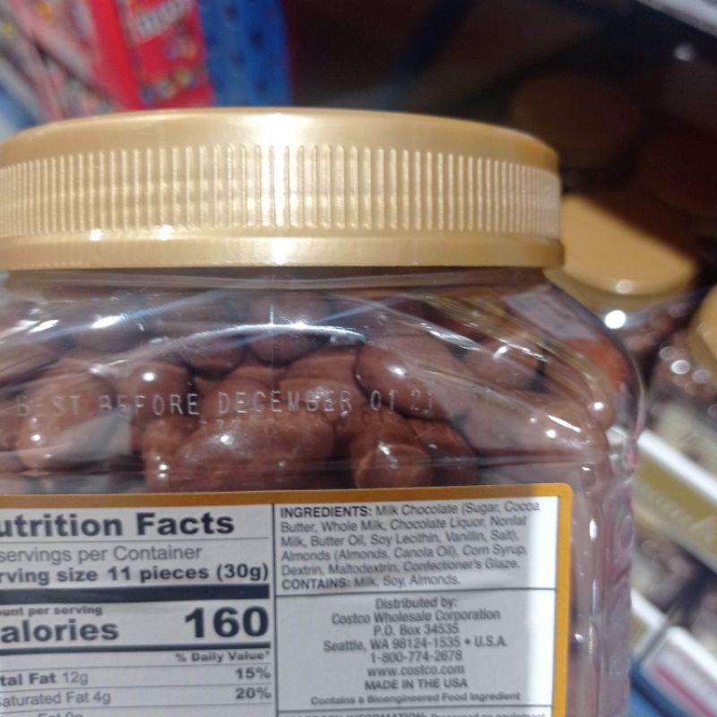 Kirkland chocolate almonds, 48 oz. Roasted almonds covered in milk chocolate; Delicious taste of these fresh almonds. Chukar cherries of prosser, wa is recalling 7.5oz amaretto rainier chocolate cherries because they may contain undeclared milk. Roasted almonds covered in milk chocolate.