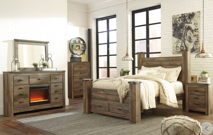 Shop the trinell nightstand and the trinell bedroom from signature design by ashley at woodstock furniture & mattress outlet. Whether she loves horses or he's a cowboy at heart, this nightstand matches their authenticity. Brown trinell chest of drawers, , swatch. Signature design by ashley trinell rustic 2 drawer nightstand with usb charging stations, warm brown : Its replicated oak grain has a brown finish with shade variations and gray undertones .
