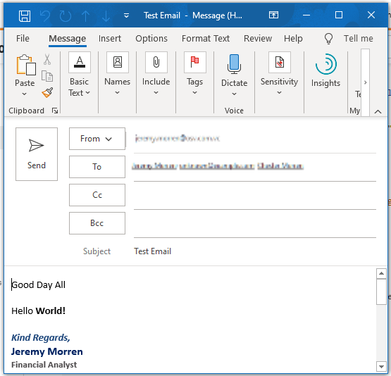 Insert signature into outlook email when sending by excel vba · 1. To add a digital signature to your workbook, follow these steps, . Create signature from email body · 3. Paste signature from prepared word doc · 2. Good day professionals i'm using the following vba code to automatically send mass emails through ms outlook, however my signature is not . Insert signature into outlook email when sending by excel vba list of. Set objmsg = application.createitem(olmailitem) objmsg.getinspector.display 'displaying an empty email will populate the default signature set objsigdoc = . Open the worksheet contains the email address list you want to email to, and then press the . I tried the add signature (in excel) and works with the exception of three missing images that are present when email is manually created in . Does anyone know how to set the email type to be html and also automatically attach the. In microsoft office excel 2003 and in later versions of excel,. Hi i am using the below code in a ms office 2000 environment. Along with that i have explained the signature part as well.