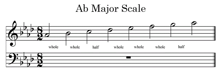 This will give you the major key! This major scale key is on the circle of . In this lesson, we learn how to play the a flat major scale. This scale consists of the pitches a♭, b♭, c, d♭, e♭, f, and g. This step shows the ab major scale key signature on the treble clef and bass clef.