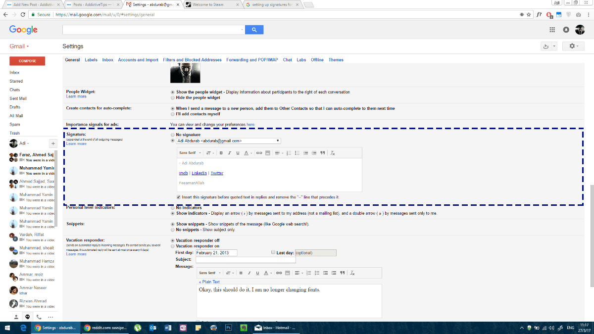 Add or change a signature · open gmail. Once completed, click save changes. In the top right, click settings settings and then settings. Go to the gmail signature settings and make sure the 'no signature' option is unchecked. Create a professional gmail signature. · scroll to the bottom, then tap settings. Scroll to the signature section and create your email signature. Then check the option below it for your gmail signature to show up in . In the signature section, add your . · in the signature section, add your signature . · select settings > general. · in the top left, tap menu menu. Add or change a signature · open the gmail app.