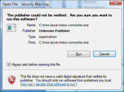 Windows cannot verify the digital signature for this file.
