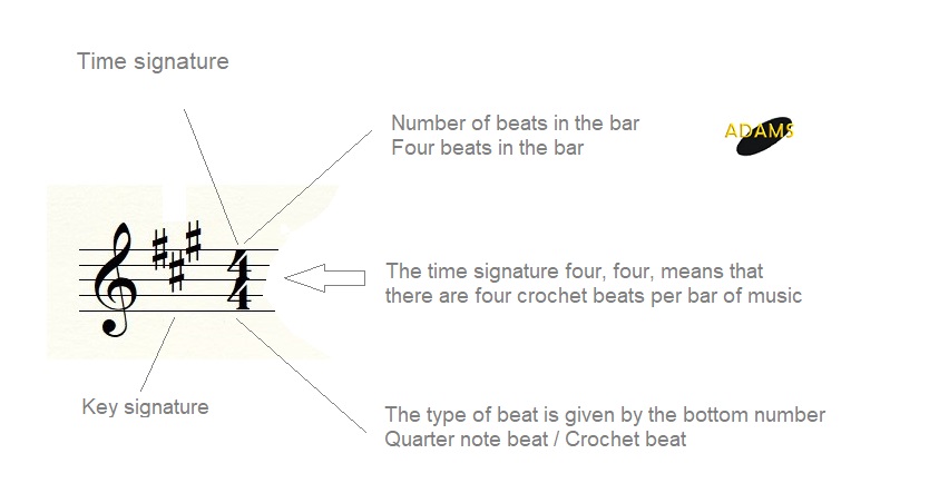 The number below the time signature or bottom number of a time signature indicates which note gets the beat that is equivalent to one beat by which the length .