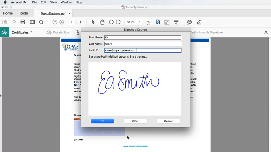 Press ok to confirm the information and start signature capture: Using adobe acrobat dc and topaz signature pad. The sig pads work great. Use your wacom signature pad or pen display to sign in the normal way. Install all topaz sigplus software.
