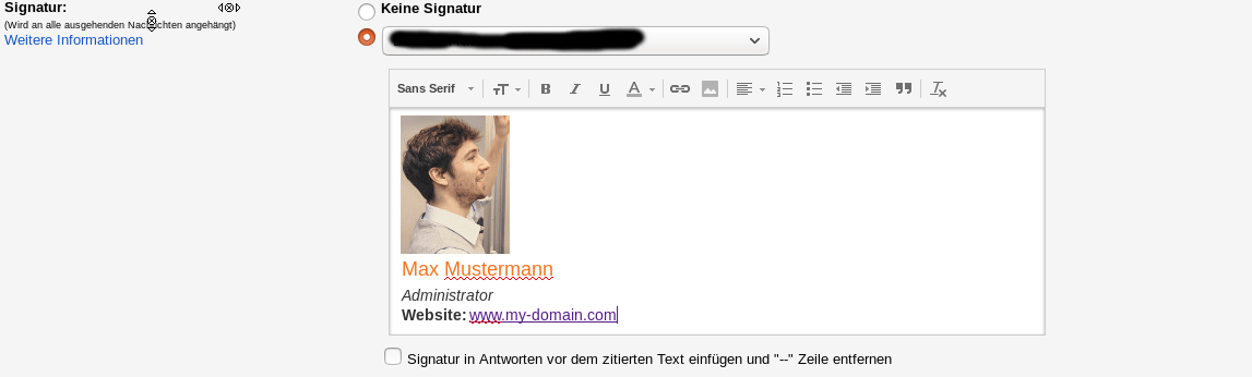 Image icon from the toolbar to add a picture to your signature. With gmail, you can only insert images into your signature . If the gmail signature image is not showing, the most common problem is that the email format is configured for plain text mode. You can't use embedded images in gmail, and we recommend you dont simply upolad them to the . Upload the image you want to link in your signature to an image sharing website.