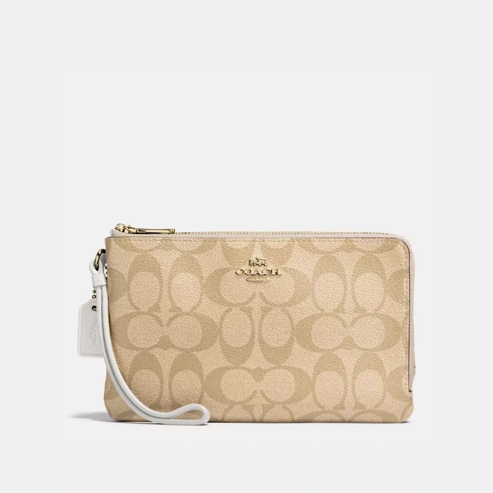 Coach double zip wallet in signature canvas khaki/chalk/gold f16109~new.