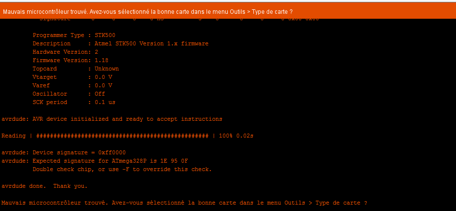 Don't bother memorizing it, just glance through the list. Could not find usb device usbasp with vid=0x16c0 pid=0x5dc Could not find a valid signature in the avrdude output. Can't find programmer id asdf. Could not find a valid signature in the avrdude output.