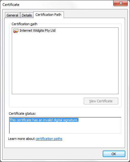 Download This Certificate Has An Invalid Digital Signature Self Signed Pictures. This problem occurs after you install the windows nt 4.0 security rollup package (srp) on a computer that is . This happens when the server that you are installing workbench server has no connection to the internet and the windows operating system is . This could be due to the length restrictions on certificate keys. If it states that the certificate in the signature cannot be verified . When you view the certificate in windows, .