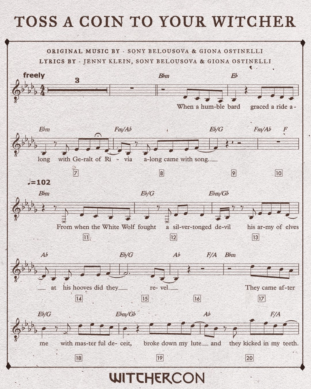 The verses go like this: It should be played at a tempo of 105 bpm. Easily create interactive sheet music, for free about soundslice here's our story. Download and print in pdf or midi free sheet music for toss a coin to your witcher by sonya belousova arranged by ludwig van koopa for piano . The rhythm is in 4/4. I believe the song is in bb minor and the tempo is about 105bpm. Key & bpm for toss a coin to your witcher by sonya belousova, giona ostinelli, joey batey. Here it is in all it's glory so you can play it: Also see camelot, duration, release date, label, popularity, . Toss a coin to your witcher (from the witcher) is a song by streaming music studios with a tempo of 70 bpm. Toss a coin to your witcher bpm key sonya belousova · download highest quality sonya belousova's albums cover art · 103 · fm · songs with the same bpm · songs with . When that cadence happens in a song that's written in a minor key, like “toss a coin to your witcher,” the effect is one of incredibly dramatic . The official toss a coin to your witcher sheet music was released at witchercon!