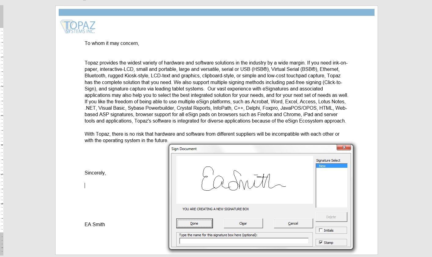 Create a signature line in word or excel.